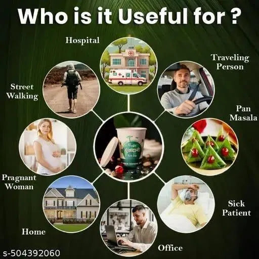 Product Name: Magic Disposable Spit Cup for Home/Office/Patients/Car (Solidifies Liquid Pack of 10) Package Contain: It has 10 Pcs of Magic Disposable Spit Cup Material: Paper PlasticColor: As per availability Combo Pack of : Pack of 10Dimension: 7.5W x 9H CentimetersWeight: 300gmAdditional Information:DISPOSABLE DESIGN: High-quality paper cup designed for convenient spitting and disposal, perfect for various settings and occasionsDISTINCTIVE BRANDING: Features Magic Thukdani branding with attractive green design elements including palm trees and decorative motifsPRACTICAL SIZE: Perfectly sized paper cup that's easy to hold and use, with adequate capacity for intended purposeCONVENIENT USE: Sturdy construction ensures stability during use while maintaining lightweight properties for easy handlingVERSATILE APPLICATION: Suitable for multiple settings including offices, clinics, and other professional environments where disposal cups are needed